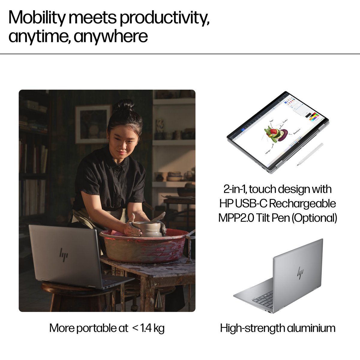 Boost your productivity with the HP Envy x360 14″ 2-in-1 Laptop PC, combining AI tech and the latest AMD Processor[1] for enhanced processing speed, efficiency, and battery life. Its 2-in-1 design lets you easily switch from laptop to tablet. Made with recycled materials and plastic-free packaging, this laptop PC is good for you and the planet.