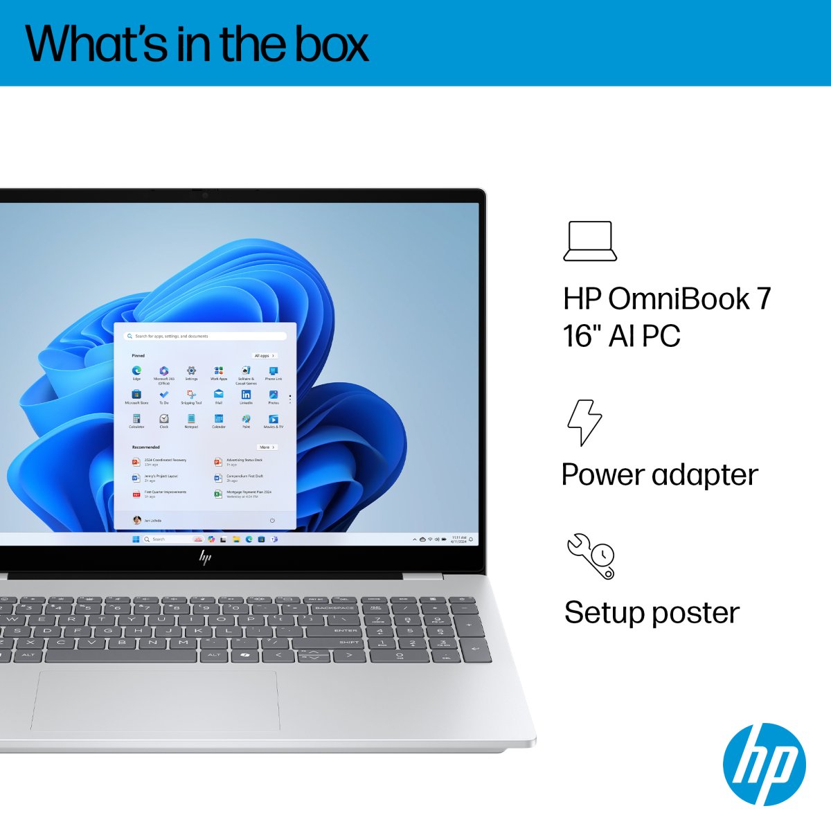 OmniBook 7 Laptop AI 16-ay0003na, Windows 11 Home, 16″, Intel Core™ Ultra 5, 16GB RAM, 1TB SSD, 2K, Glacier silver