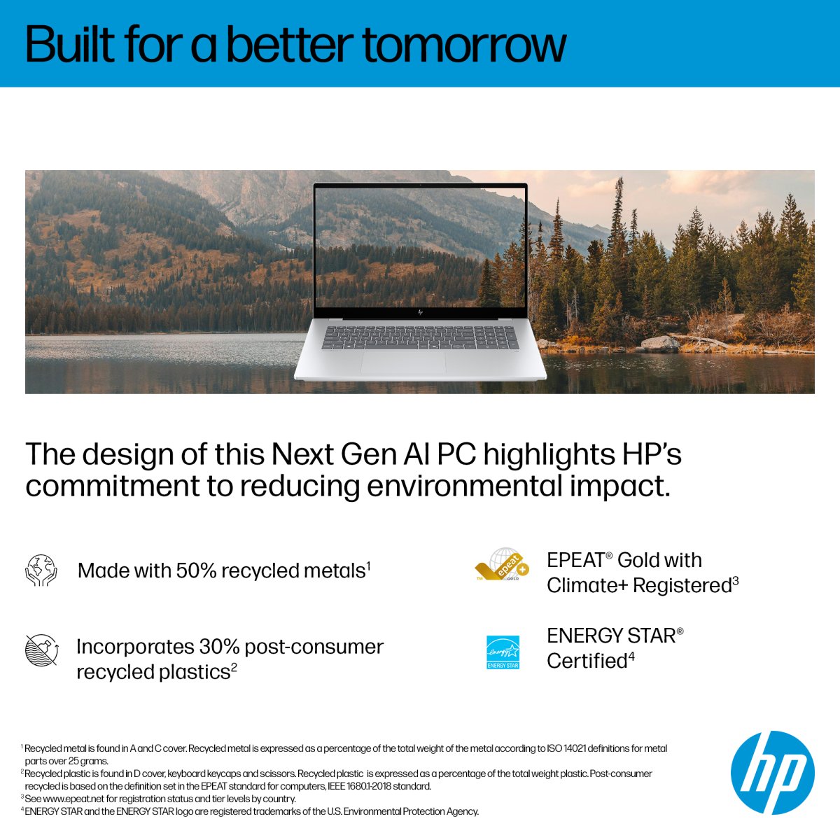 HP OmniBook X 17.3 NGAI PCs are designed using recycled metals[3] and post-consumer recycled plastics[4].