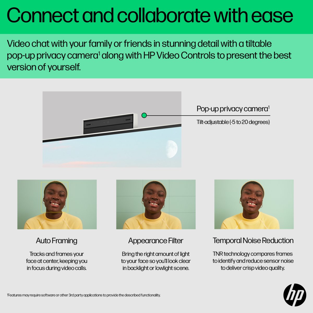 Made for true collaboration with a tiltable, pop-up privacy camera[4], dual mics, and advanced noise-reduction.