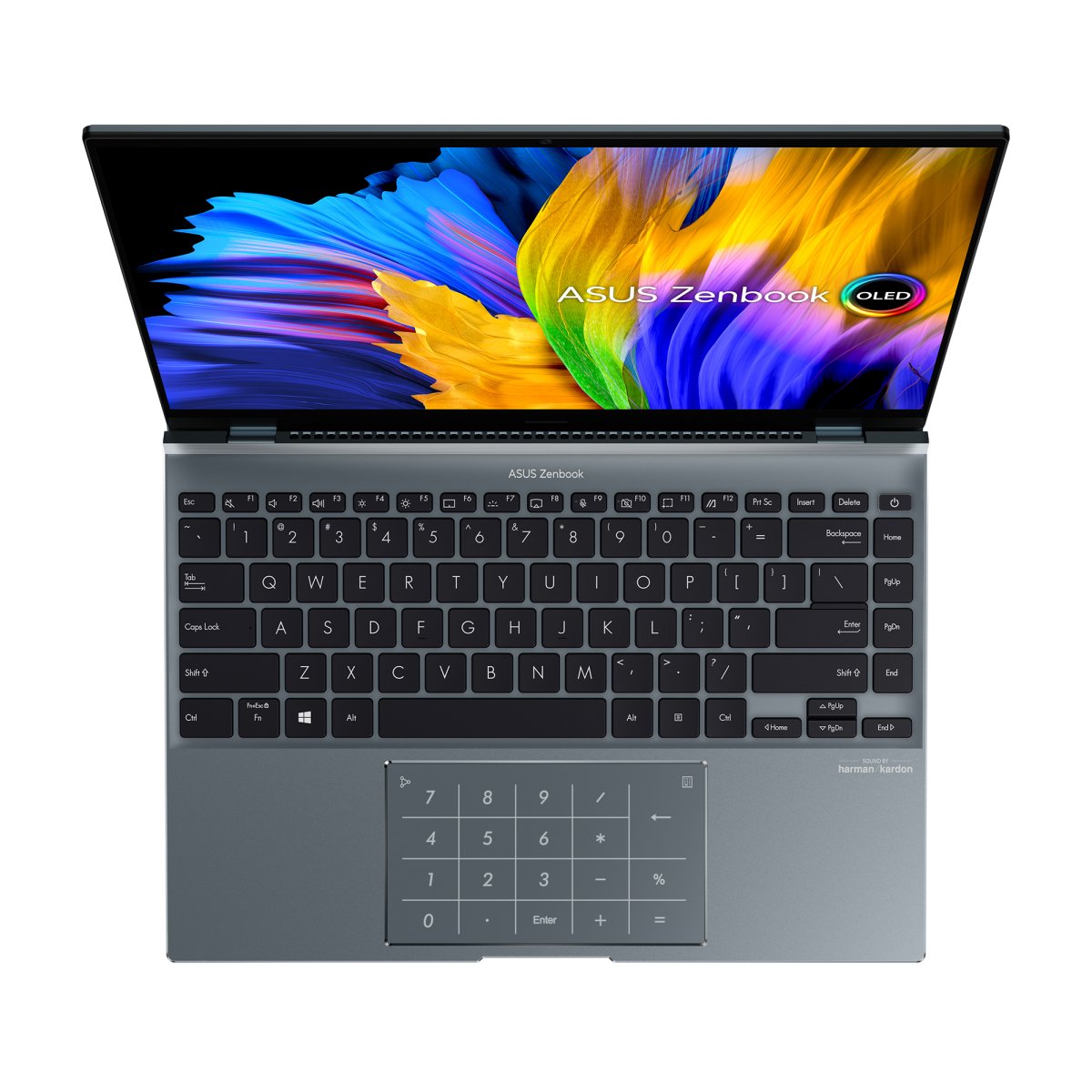 We’ve made the user experience on Zenbook 14X OLED even better with some thoughtful design features. The 180° lay-flat ErgoLift hinge makes it easy to collaborate, and for easy data entry, there’s the ASUS NumberPad 2.014 that integrates a full-size LED-illuminated numeric keypad into the touchpad. There’s secure fingerprint login, too, with a handy sensor on the power button.