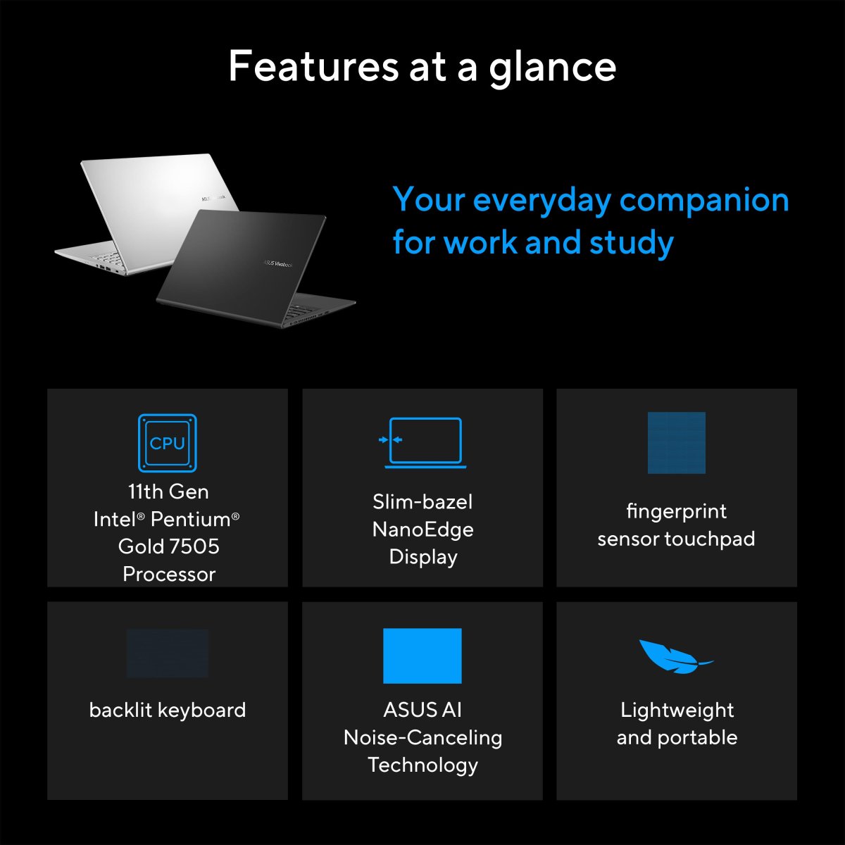 With an overall weight of just 1.8 kg2, the extremely portable Vivobook 15 is the lightweight laptop that keeps up with your fast-paced lifestyle. It looks good, too, with its Transparent Silver or Indie Black finish.