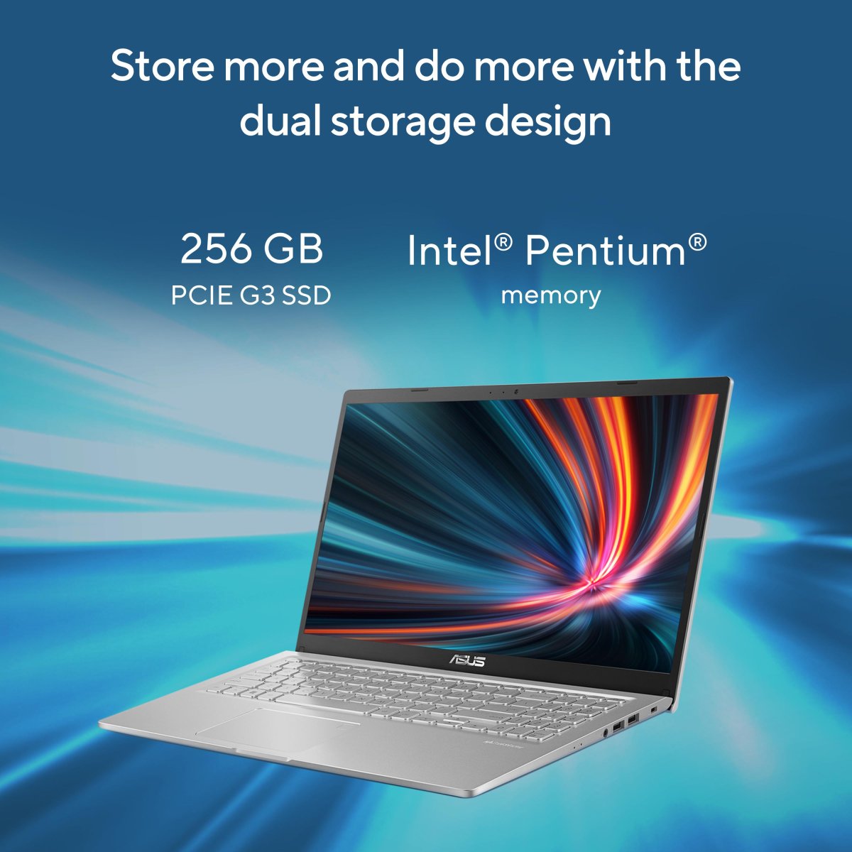 Vivobook 15 has a dual storage design to give you the benefits of superfast data performance and a large storage capacity. Install apps on the SSD for quicker response and loading times, and use the HDD to store large files such as movies, music libraries, and photo albums. Vivobook 14 also supports Intel® Optane™ memory1 technology so apps load faster and multitasking feels smoother.