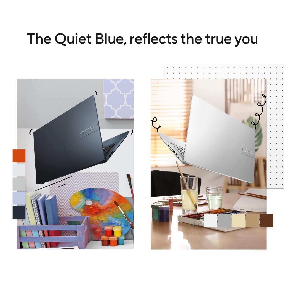 Vivobook Pro 15 is finished with a unique vibe that sets it apart from the crowd. Choose calming Quiet Blue, or classic Cool Silver — whichever reflects the true you.