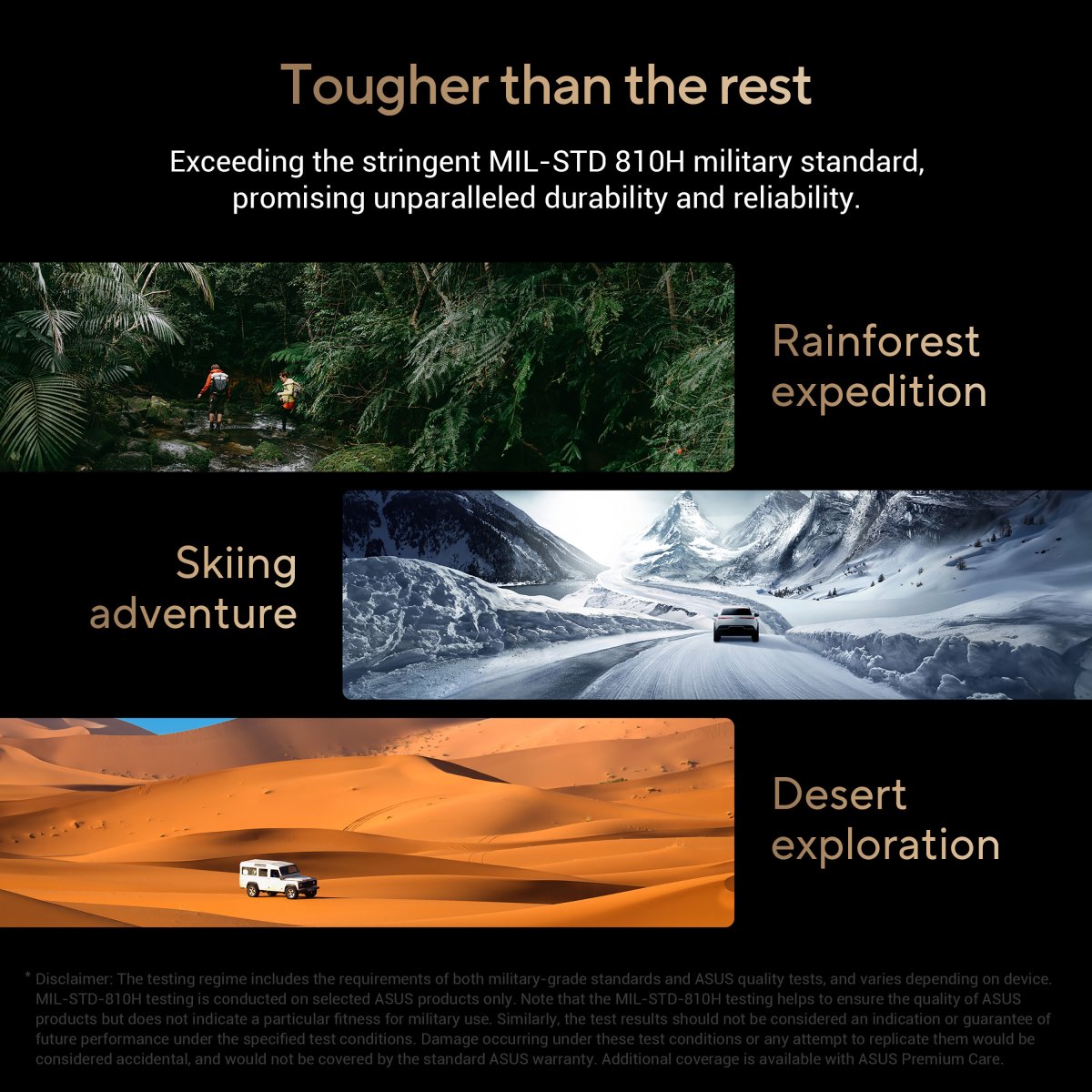 Crafted to conquer, ProArt P16 exceeds the stringent MIL-STD 810H military standard, promising unparalleled durability and reliability. Engineered for the extremes, it guarantees longevity and sustainability, empowering you to work, travel, and unwind with absolute confidence.