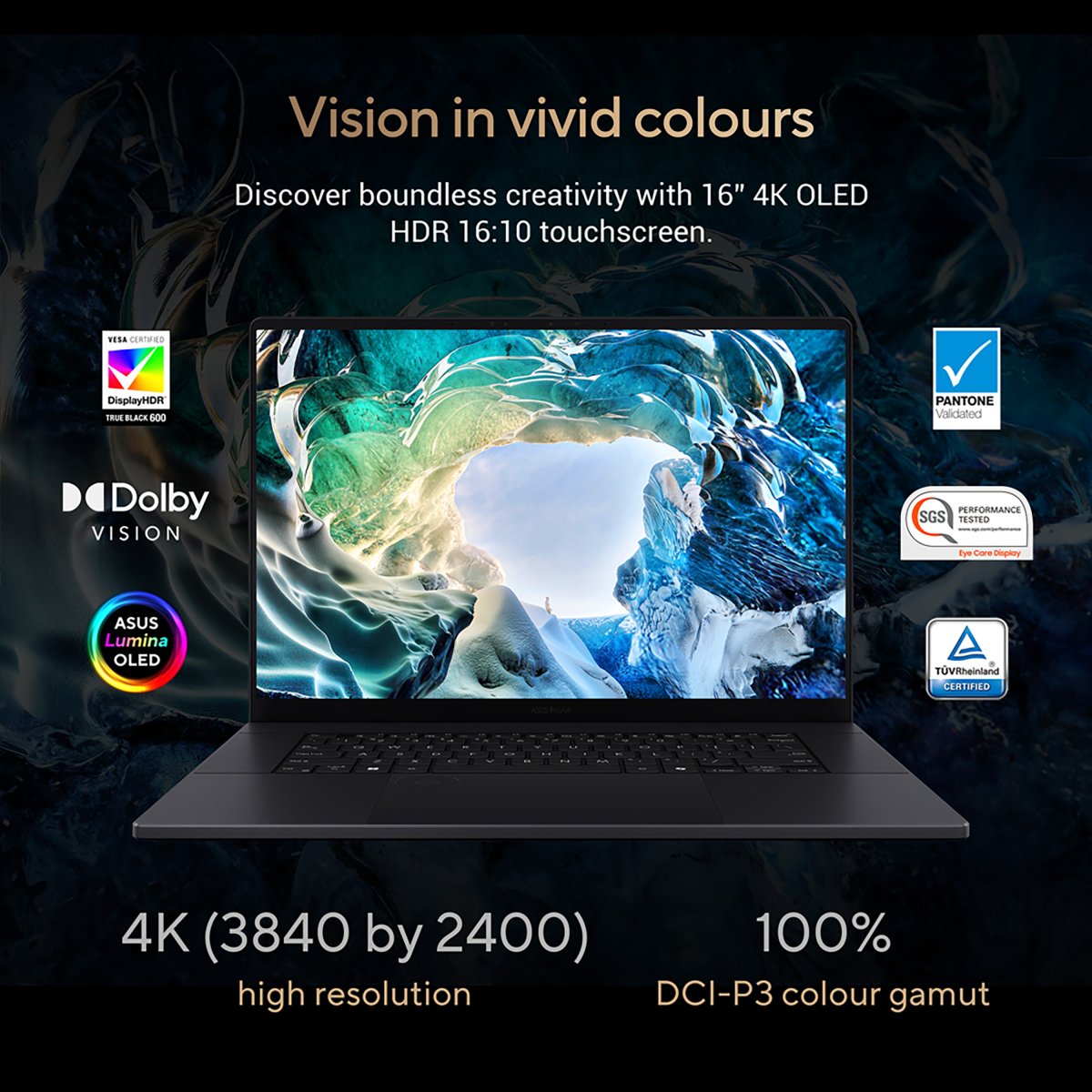 Discover boundless creativity with the ProArt P16, featuring the ASUS Lumina OLED touchscreen — where every pixel tells a story. This 4K OLED touchscreen with stylus* support enhances projects with vibrant colours and sharp details. Designed for continuous inspiration, this eyecare-friendly screen adapts to any light. The adaptive screen offers smooth visuals, making your workspace as limitless as your creativity.