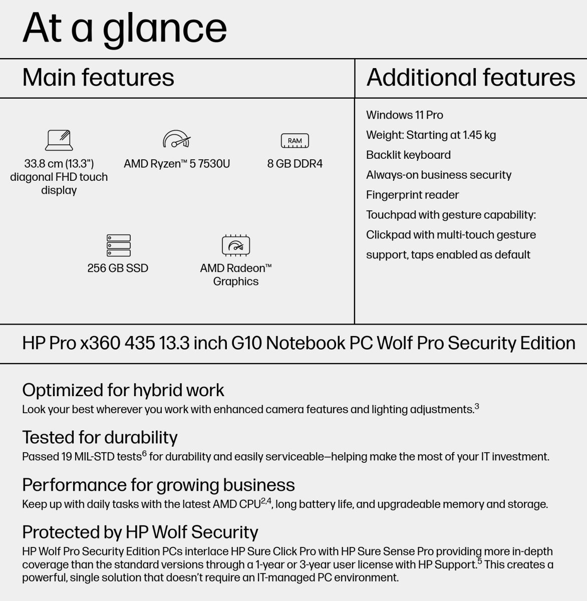 Drive business growth with the commercial-grade HP Pro x360 435 convertible touchscreen laptop. Focus on business priorities with a well-equipped device for hybrid work, that’s durably built and easily upgradeable for long-term performance.