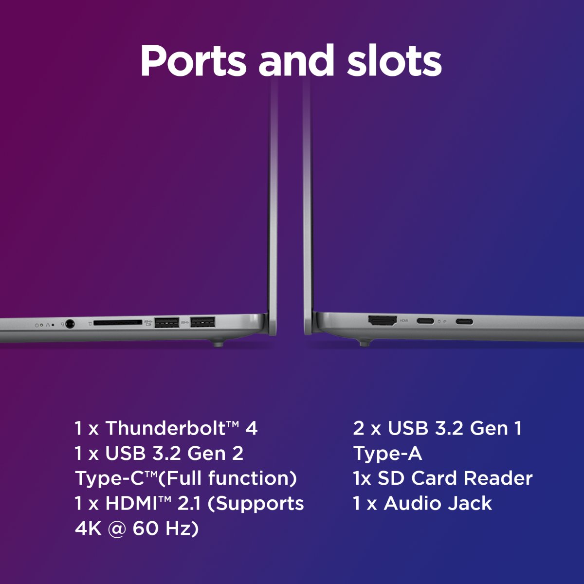 Turn your workspace into a productivity powerhouse with the IdeaPad Pro 5i Gen 9 laptop that offers a myriad of essential features. Its camera comes with a Time of Flight (ToF) sensor to enable smoother communication. The battery charges super-quickly, so you can keep creating without any interruptions, and you’re always in control of your privacy with privacy shutter — toggle as per your convenience. Plus, experience effortless file transfers, device connectivity, and video outputs, all without compromising on expanding your SSD storage.