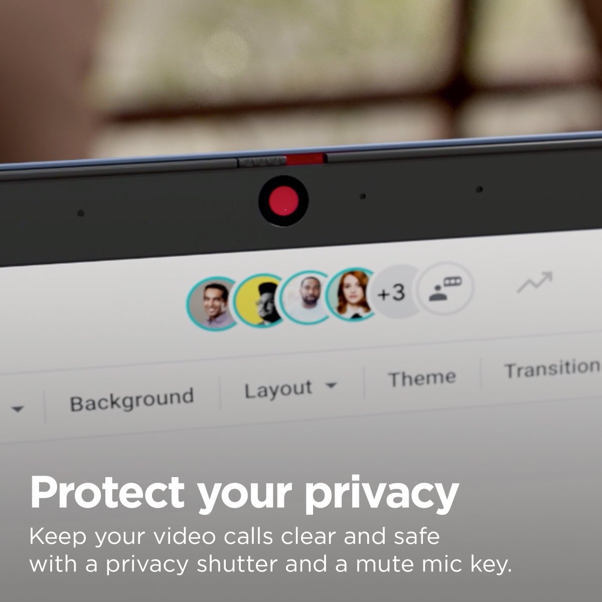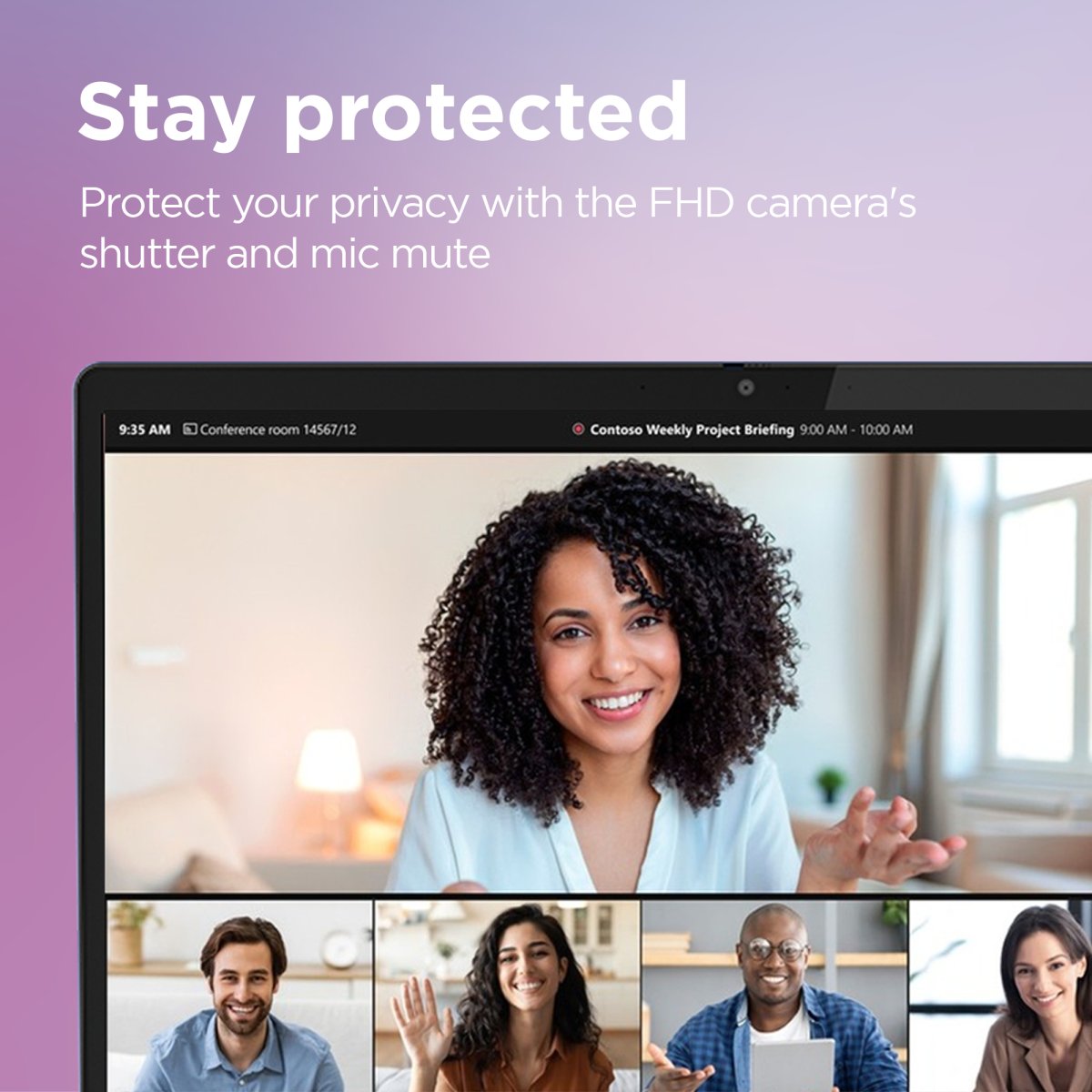 Keep your conversations secure and private with a privacy shutter built into the FHD camera and a mute mic key. Make video calls that are crystal clear via FHD while the dual mike array eliminates distracting background noise. When you’re done calling, close the built-in camera shutter manually to secure an extra layer of privacy.