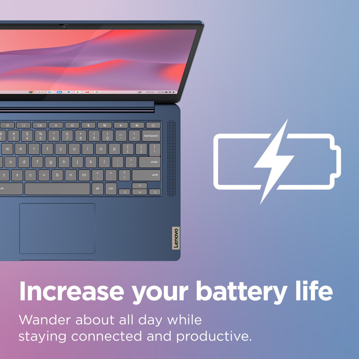 The ENERGY STAR®-rated and EPEAT® Gold-registered* IdeaPad Slim 3 Chromebook features battery material built with 30% post-consumer recycled plastic, plus 30% ocean-bound plastic in the system bag. And through the CO2 Offset Service, you can also offset the estimated carbon emission linked to your PC over its average lifecycle by supporting projects aimed to help offset CO2 emitted in the atmosphere.*EPEAT-registered where applicable — see www.epeat.net for registration status by country.