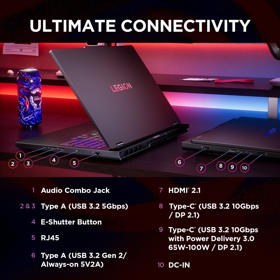 The Legion Pro 5 is built for rising esports stars, combining AMD Ryzen processor and NVIDIA GeForce RTX graphics along with AI Engine+ performance optimization. With Lenovo Coldfront cooling and a sleek, esports-focused design, it’s the smartest choice for gamers looking to rise fast in competitive play.