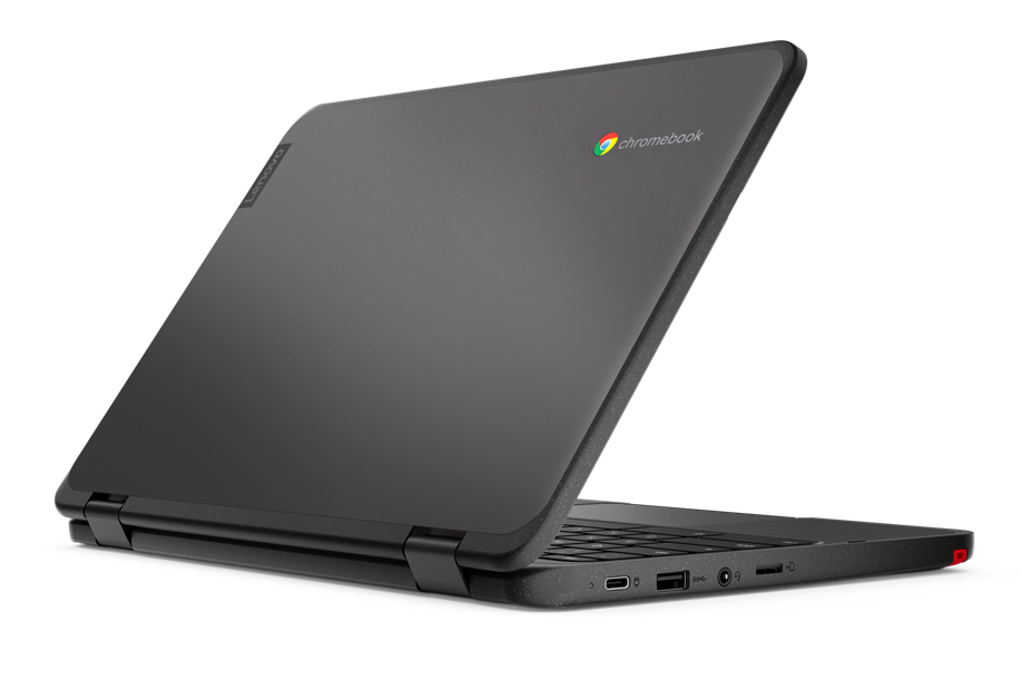 Designed to MIL-SPEC-810H and Lenovo EDU spec standards, the Lenovo 300e Chromebook Gen 3 is engineered to withstand the scrapes, slips, and spills of a typical school day—in the classroom or at the kitchen table. This device features a drop-resistant design, rubber bumpers, improved water-resistant keyboard (now, up to 360 ml / 12.17oz), improved mechanically anchored keys, and reinforced ports and hinges.