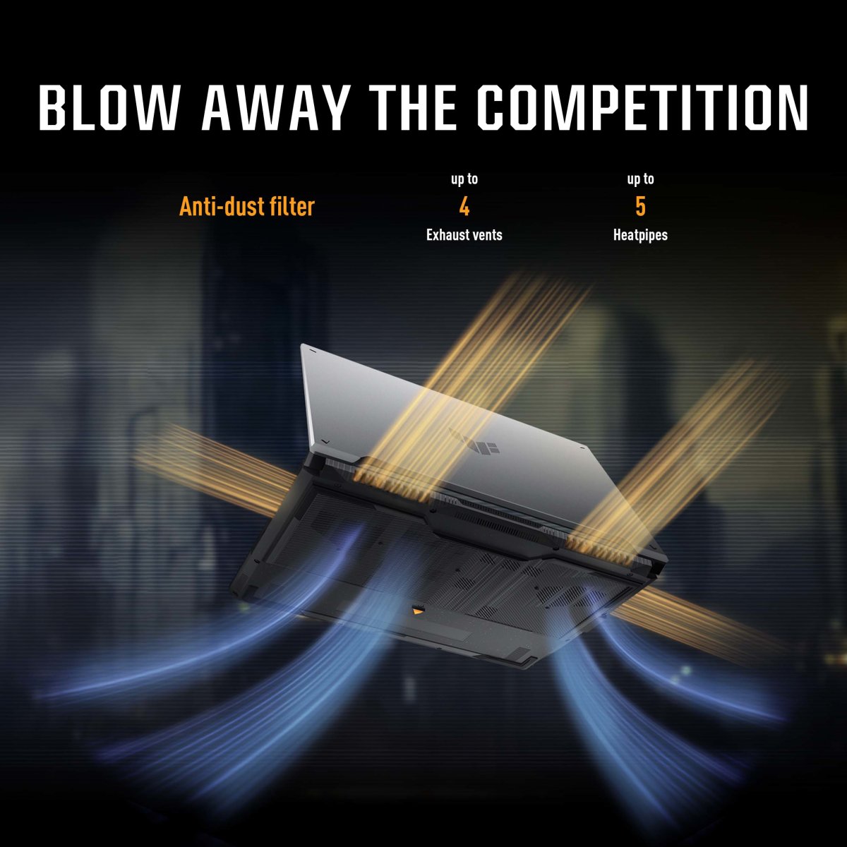 High core count CPUs create more heat when at full load . The TUF Gaming F16 is equipped to handle its high-power CPU with a pair of 84-blade Arc Flow Fans™. Our variable thickness design has the dual benefit of increasing pressure while reducing turbulence, improving cooling performance without extra noise. When paired with 4 exhaust vents and 5 dedicated heatpipes, the 2024 TUF Gaming F16 keeps its cool in even the most demanding games.