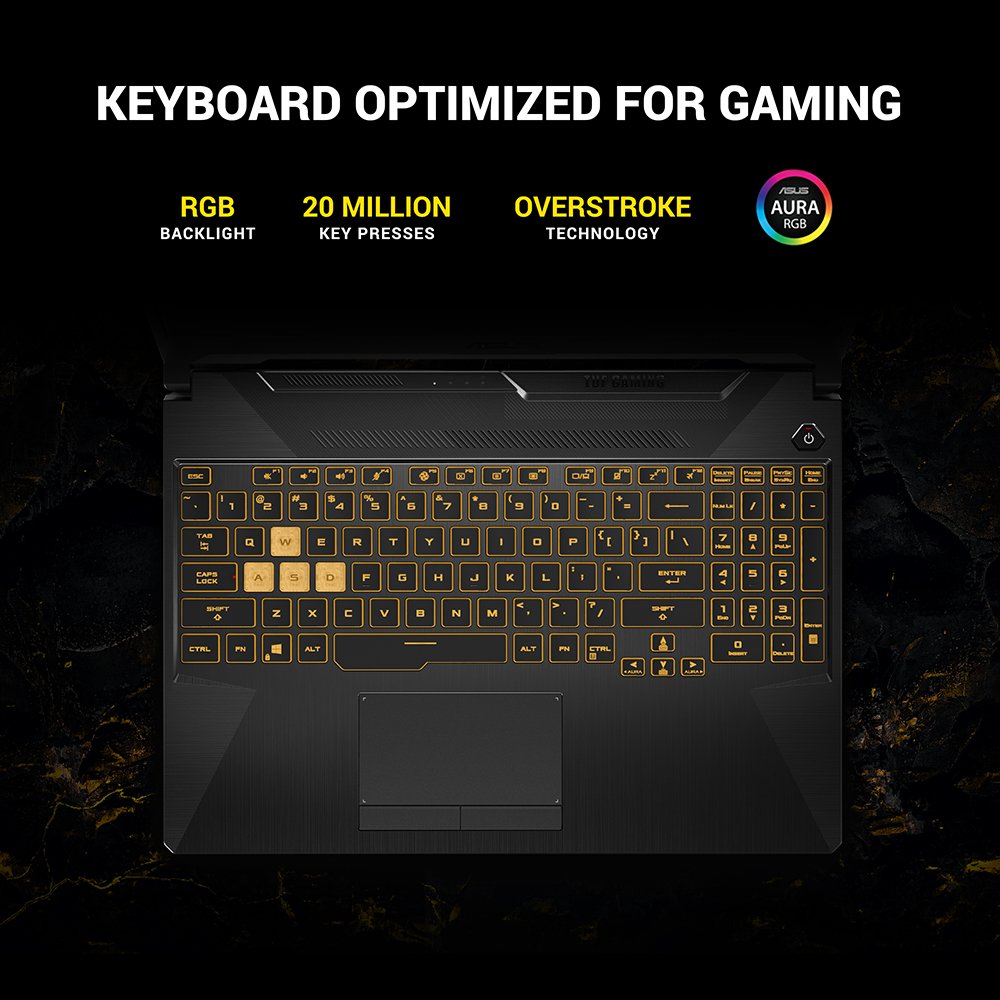 Arm yourself with a desktop-style keyboard optimized for gaming. Uniform RGB backlighting lets you express your own unique style, while highlighted WASD accents give you a visual shortcut to key movement commands. Overstroke technology triggers higher in each keystroke for faster responsiveness and effortless control. In true TUF form, each key is durable enough to withstand over 20 million presses for superb long-term reliability and precision.