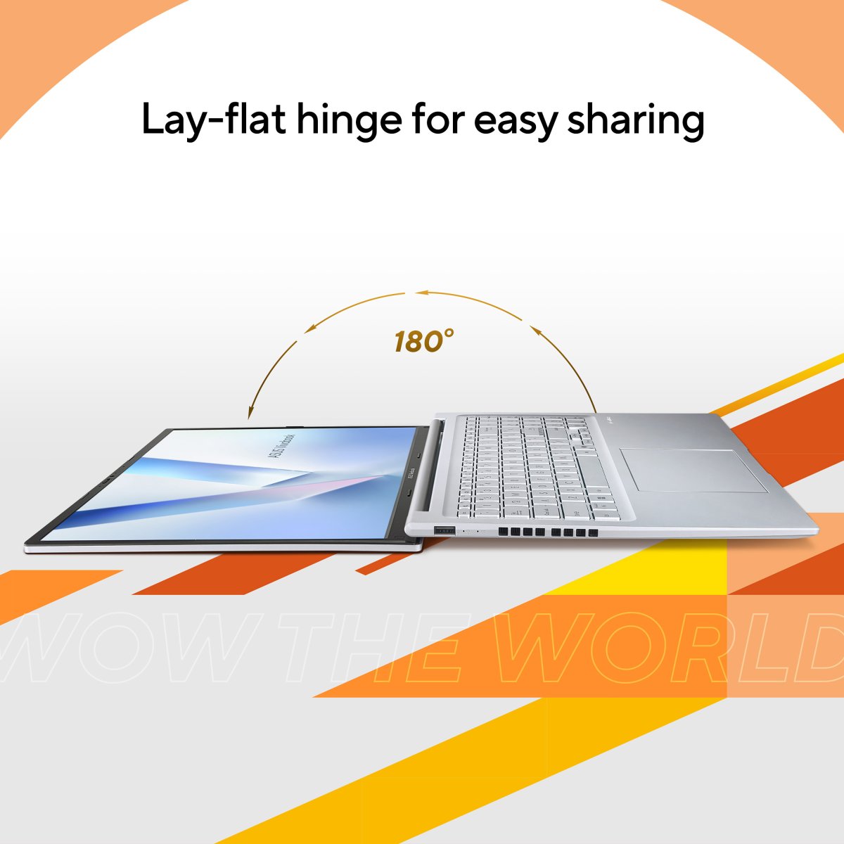 Vivobook 16 features a precision-engineered, lay-flat hinge that makes it easy to share content with others, or collaborate with a group of people around a table.