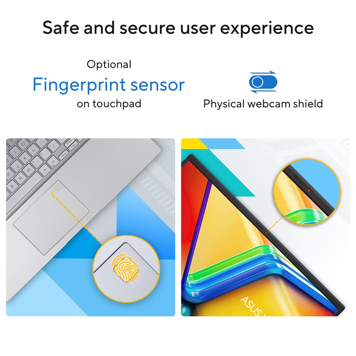 Vivobook 15 takes your privacy and security seriously. There’s an integrated privacy shield that slides over the webcam for instant privacy, shielding you from prying eyes and disturbances.
