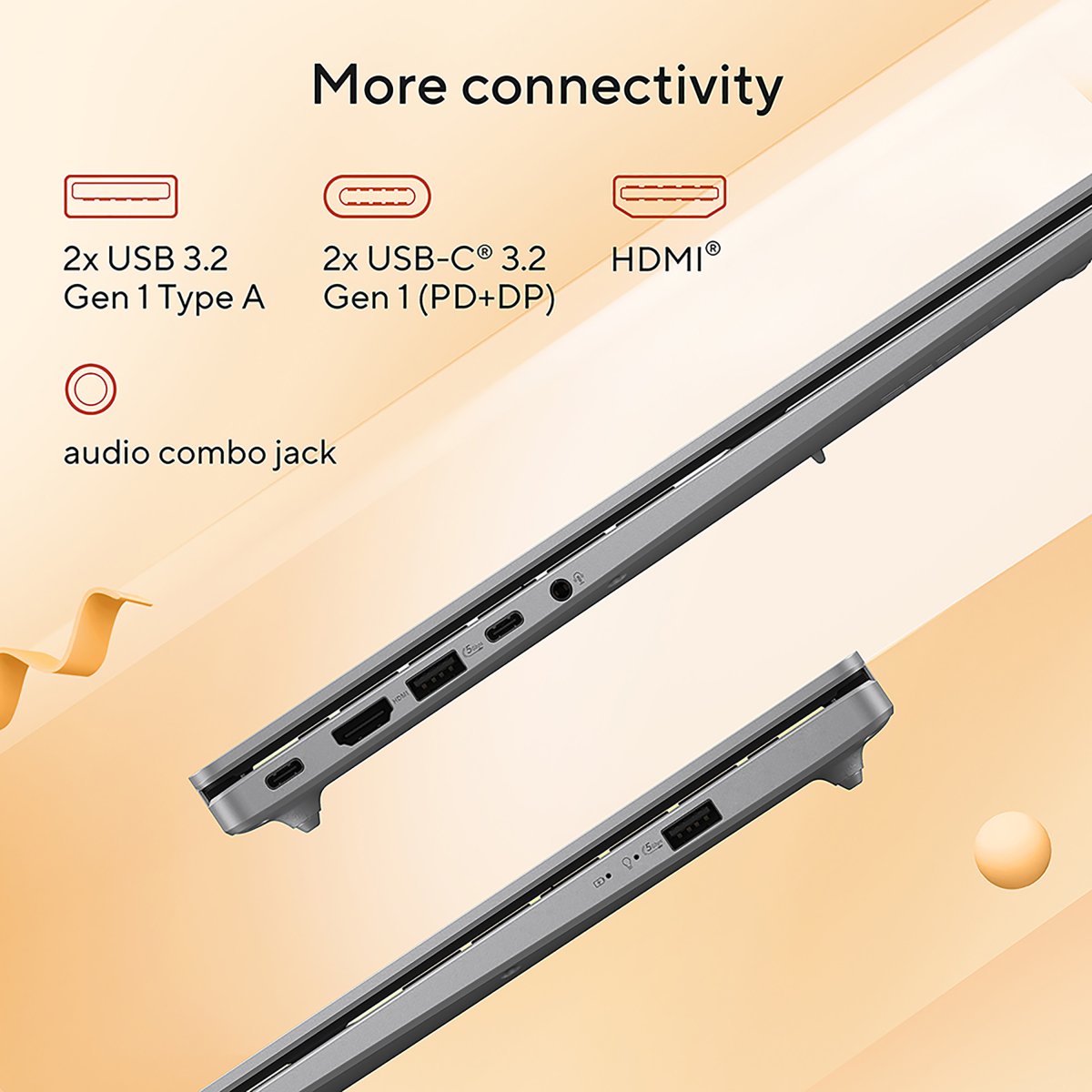 With its comprehensive I/O ports, ASUS Vivobook 16 is your ultimate work assistant. It features two USB 3.2 Gen 1 Type-A ports, two USB 3.2 Gen 1 Type-C ports with fast charging, an HDMI port, and an audio combo jack. Plus, with Wi-Fi 6, you’ll enjoy seamless cloud AI experiences.