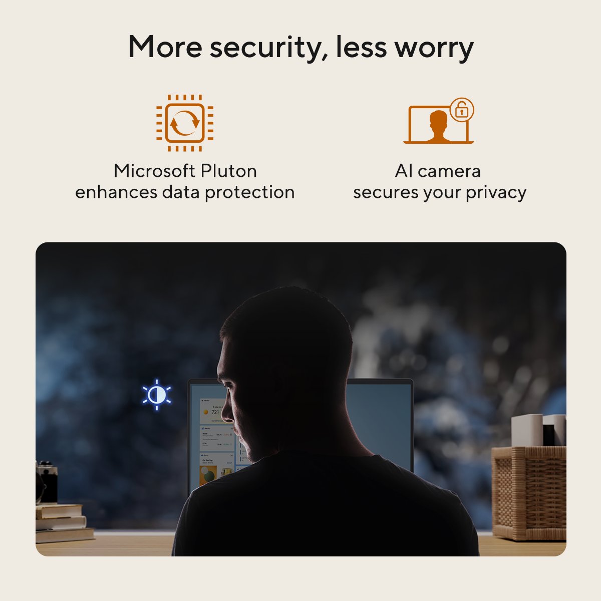 AI camera for instant login, with sensitive data secured by Microsoft Pluton technology.