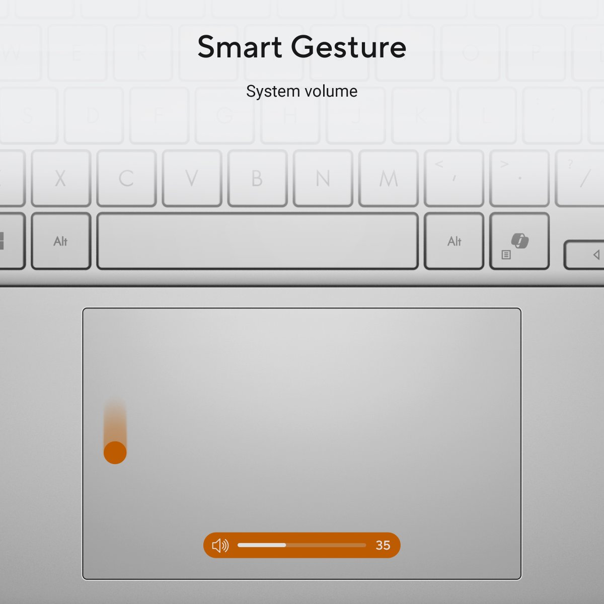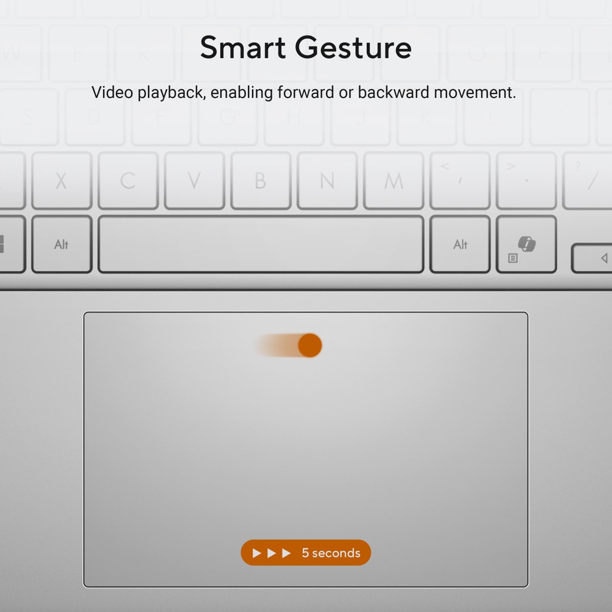 The enlarged touchpad matches the display’s aspect ratio for intuitive control. The extra area increases comfort and makes gestures easier.