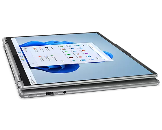 The new sleek design of the Yoga 7i Gen 7 maximizes comfort with rounded edges and a soft and smooth finish. The unibody chassis and thin, light form gives you options, as you enjoy all four of Yoga’s foldable modes. So, you can work from home or at the office in laptop or tablet mode or share your screen with a friend with tent or stand mode.