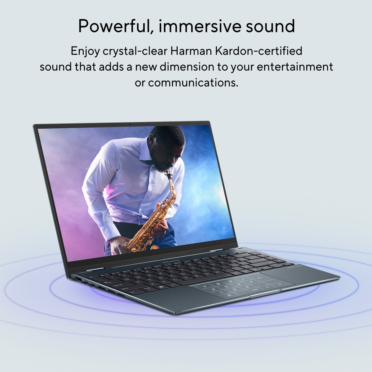 For unrivaled audio quality, Zenbook 14 Flip OLED has a stereo sound system certified by the audio experts at Harman Kardon. It delivers powerful, immersive sound that’s crystal-clear, with the multi-dimensional soundscape of Dolby Atmos. It immerses you in your favourite entertainment with sound that moves all around you with breathtaking realism in music, movies and TV.